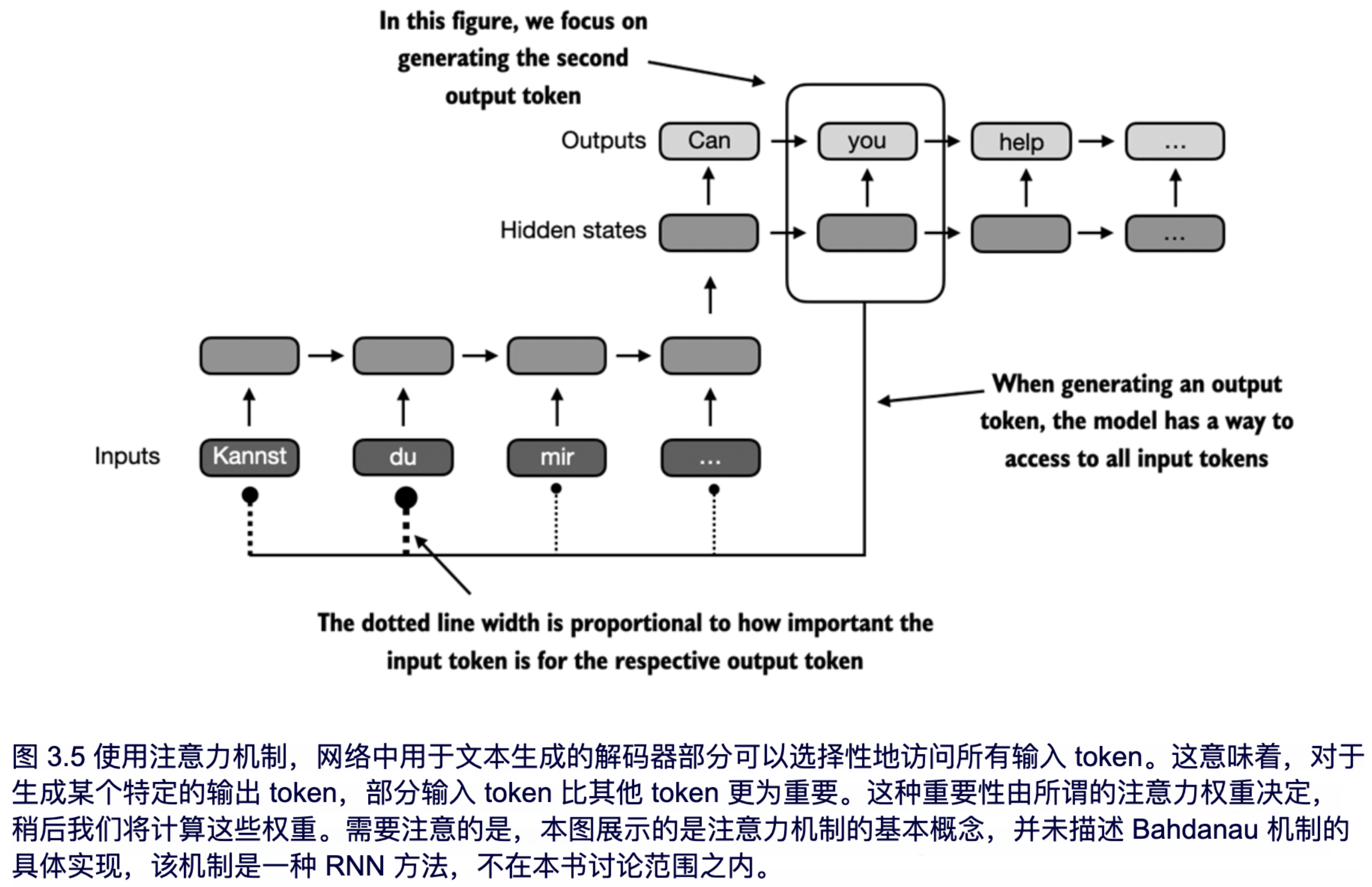 有趣的是,仅仅三年后,研究人员发现构建用于自然语言处理的深度神经网络并不需要 RNN 结构,并提出了基于自注意力机制的原始 Transformer 架构(在第 1 章中讨论),其灵感来自 Bahdanau 提出的注意力机制。