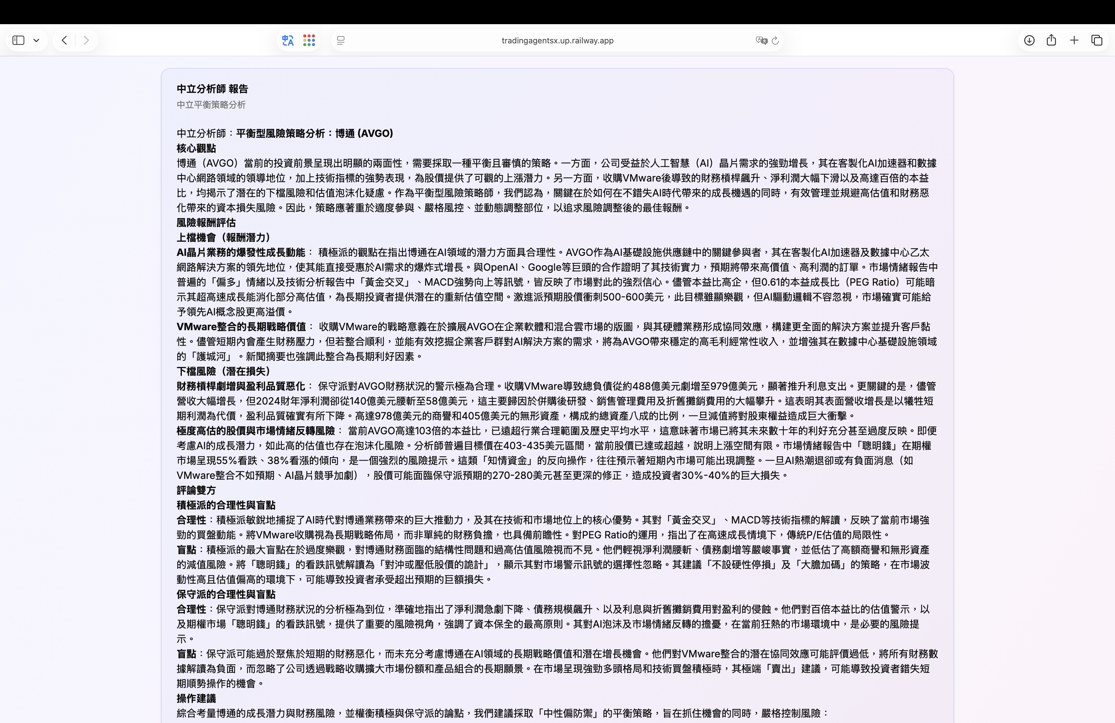 整合所有分析師報告後的交易執行計劃與策略